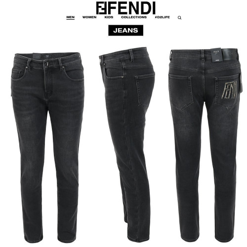 FENDI 펜디 레터링 자수 로고 블랙 슬림 일자진