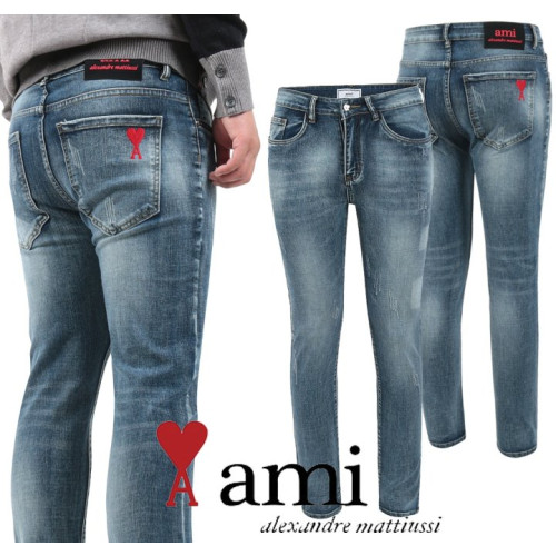 • AMI 아미 레드 하트 자수 슬림진