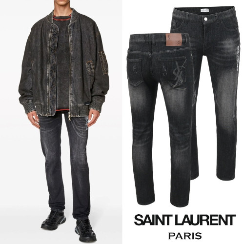 SAINT LAURENT 생로랑 레터링 자수 빅로고 융기모 흑청 슬림진 > 팬츠