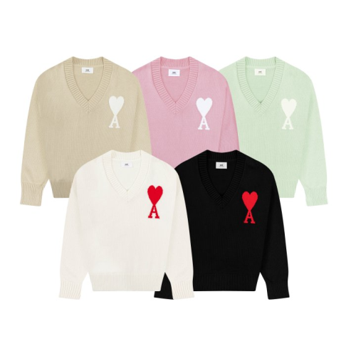 AMI 아미 038 빅 하트 V넥 니트